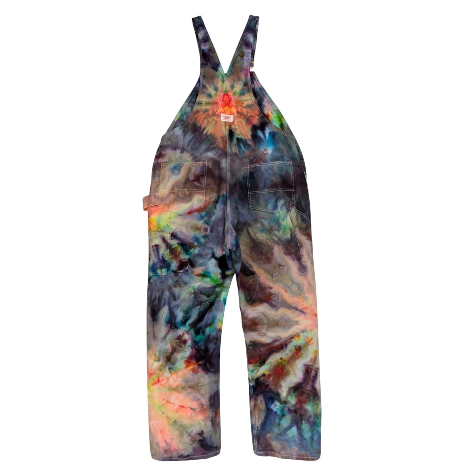 "Swirling clouds in violet haze" Round House Bib overalls in five way cosmic explosion sz 42/32 (fits like a 38/31)